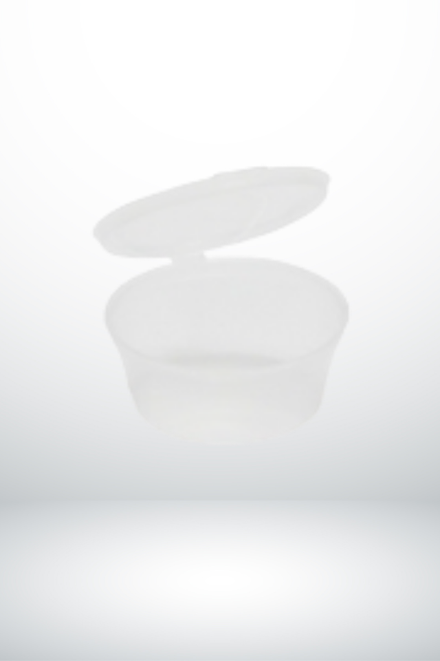 Sauce Cup with Hinged Lid is a 30cc capacity sauce container presented in a transparent cup made from PP (Polypropylene) material with a diameter of ⌀50mm, sold in packs of 1000 pieces. Made from hygienic and healthy materials, Sauce Cup with Hinged Lid preserves the sauces while allowing for easy usage with its hinged lid. This sauce container offers an environmentally friendly option and is perfect for restaurants, cafes, and fast-food chains.